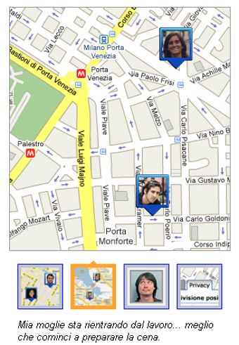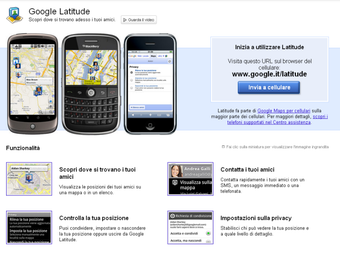Google Latitude è un servizio di Google che ti consente di condividere la tua posizione con i tuoi contatti, o con chi vuoi tu, e di cercare i tuoi amici sulla mappa.
